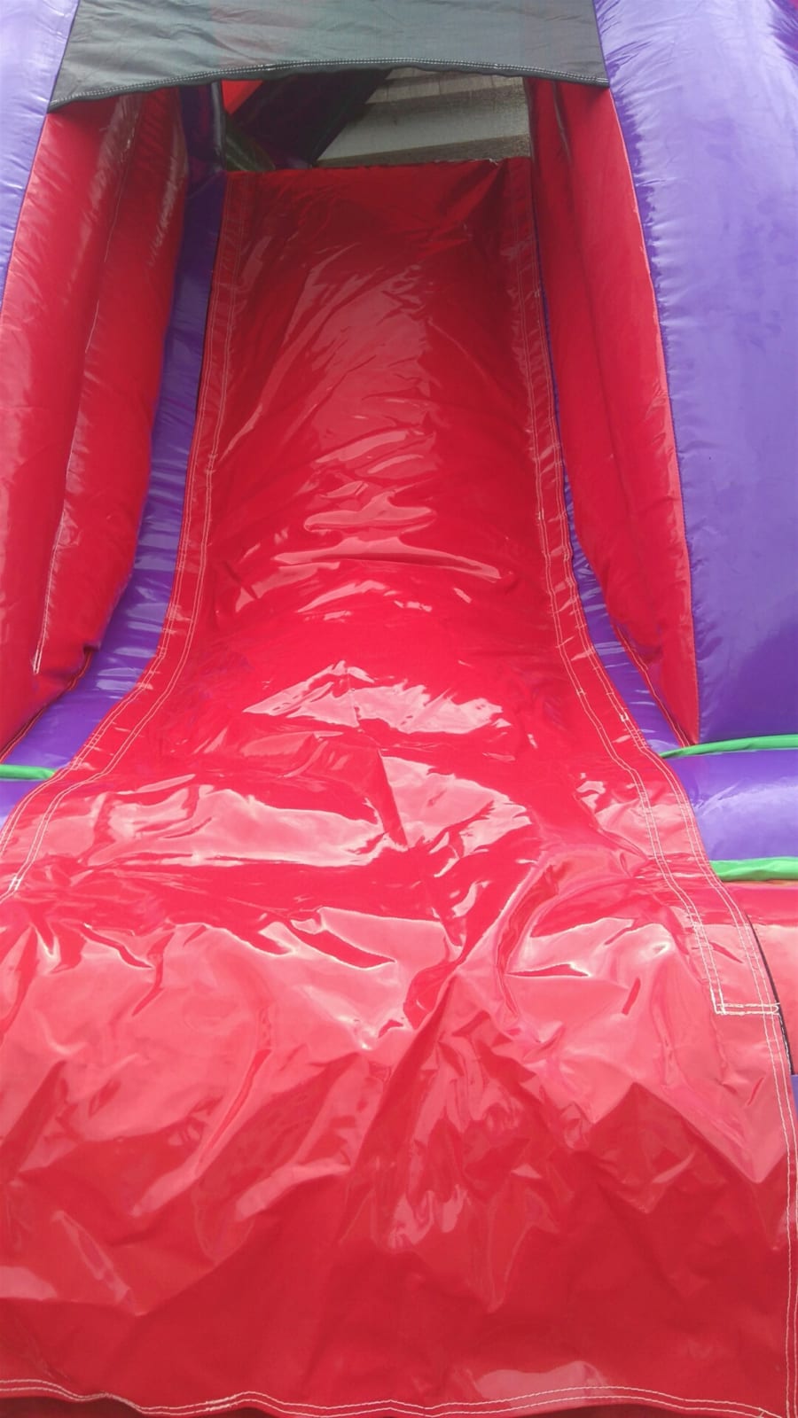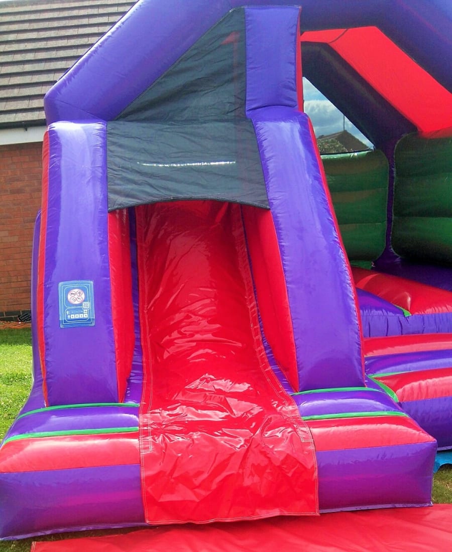 Our purple and red front slide combi with an extra high slide has fantastic vibrant colours and a reinforced bounce bed!