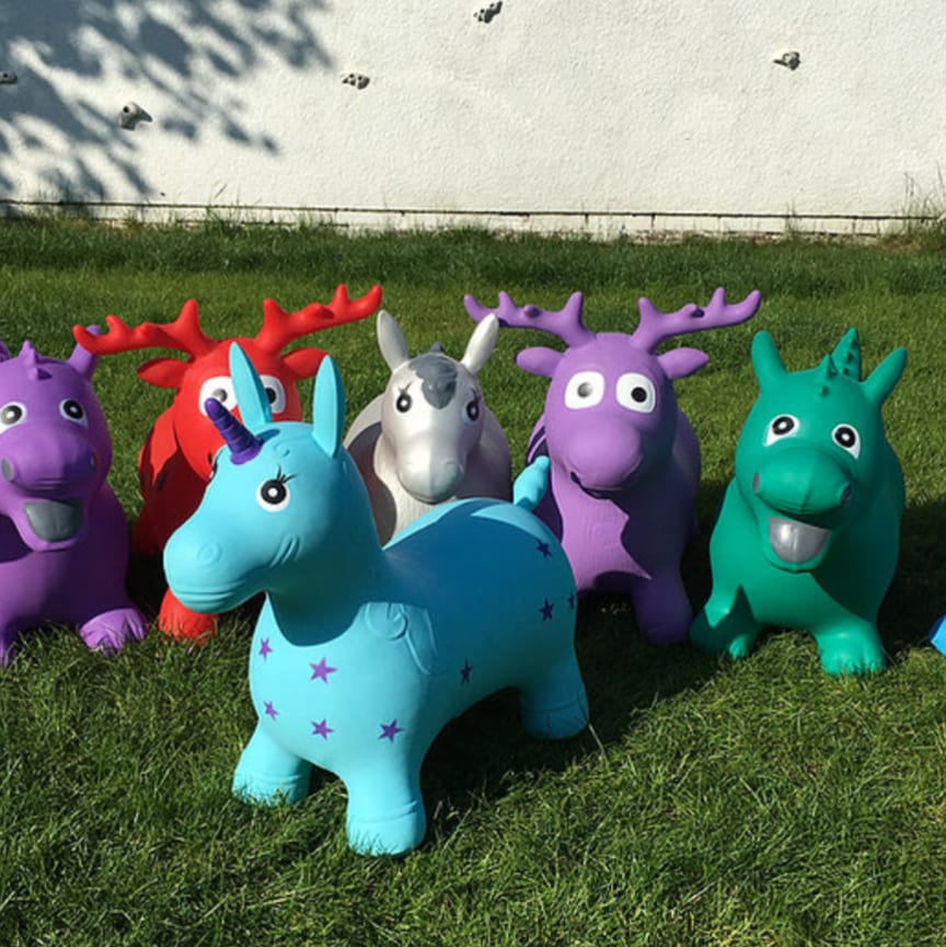 The Happy Hopperz have ears and horns for the children to grip and wide sturdy feet to help with balance.